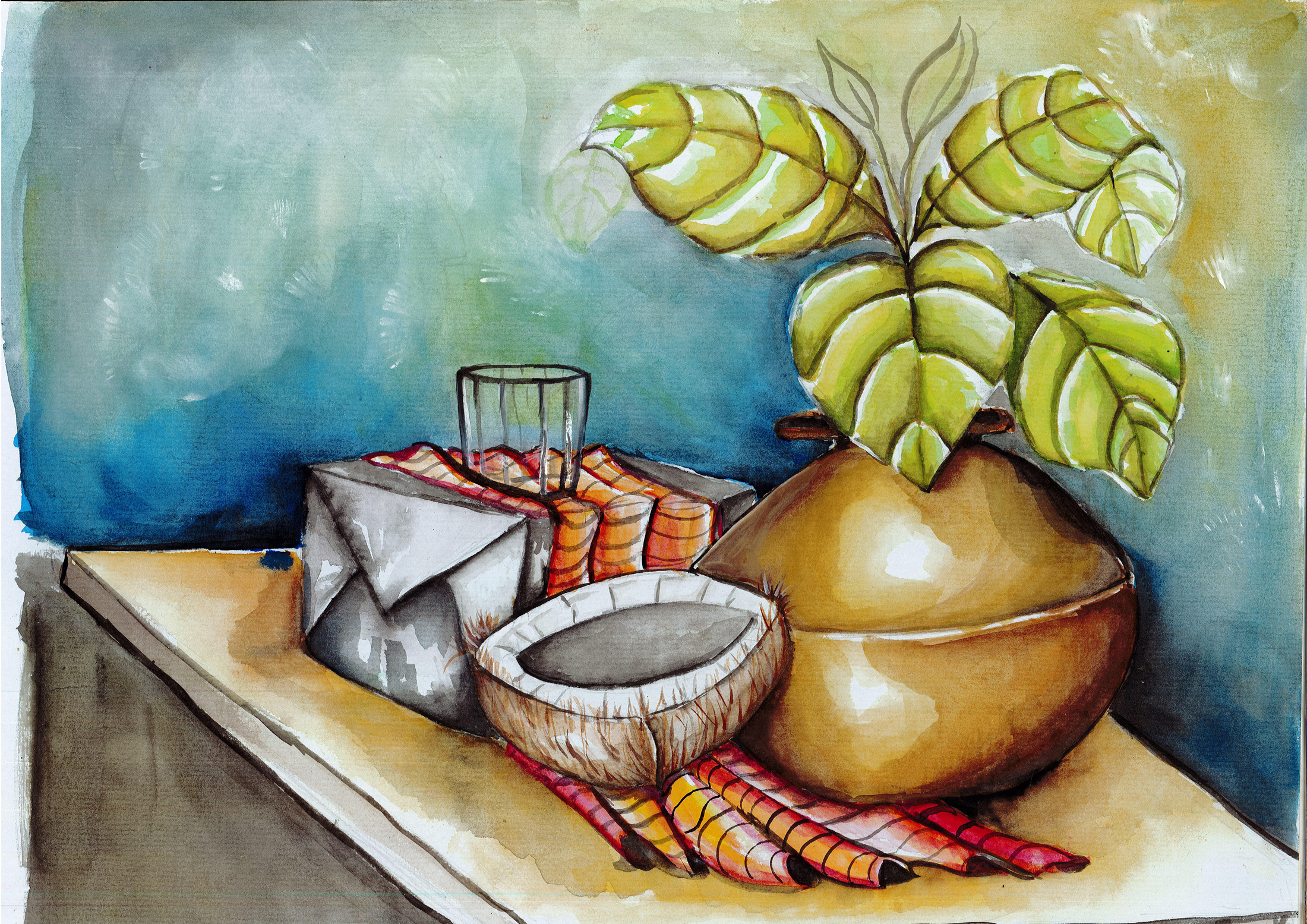 The painting that is most commonly drawn in drawing lessons during school days is the one I created during my school time
